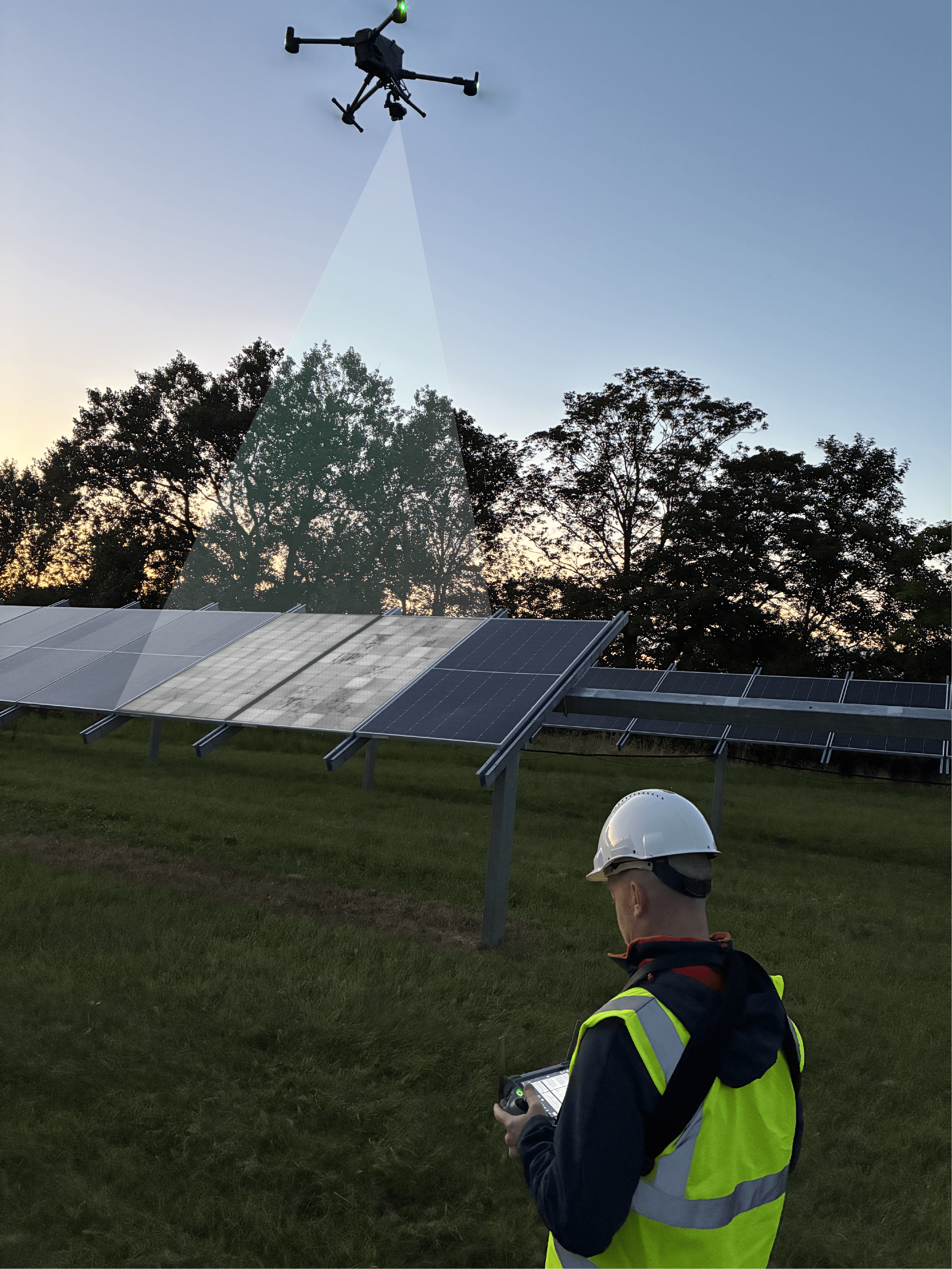Drone based inspection captures full panel strings in a fraction of the time required for manual electroluminescence